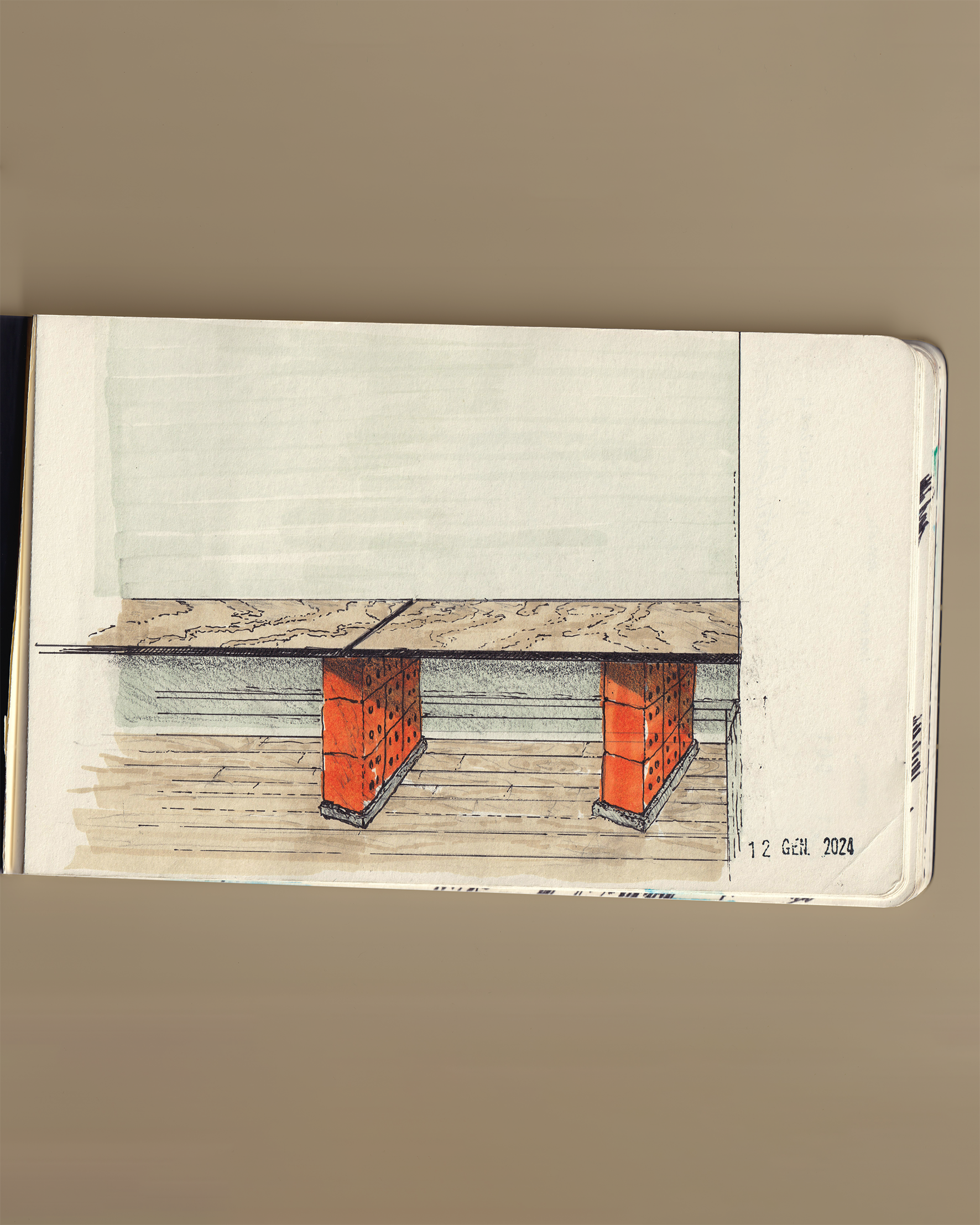 il tavolo (198kg) è un pezzo monolitico: disegnato utilizzando l'ultima lastra di marmo rimasta al marmista.