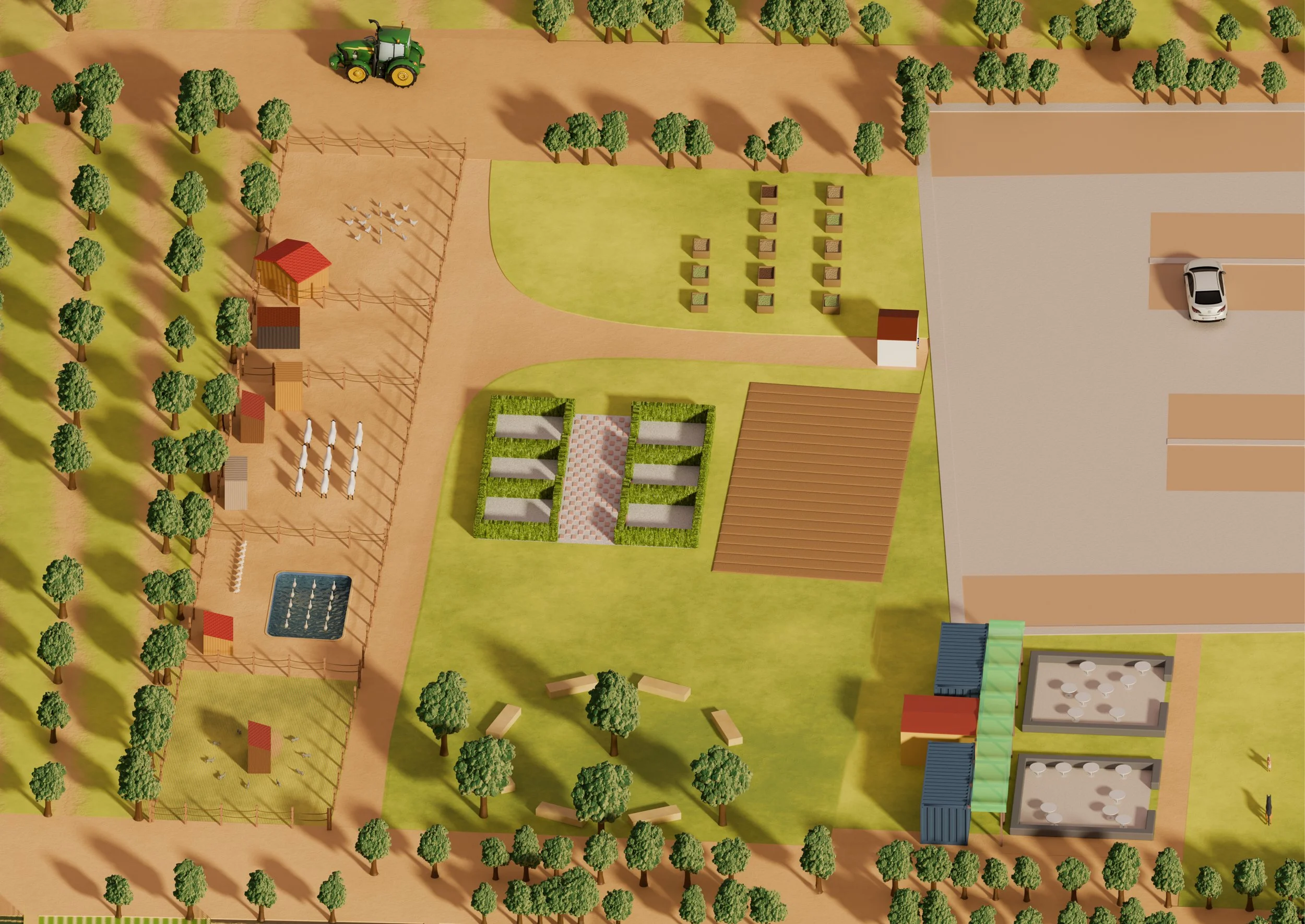 Per quanto l’infanzia sia solo un lontano ricordo, da bambino sognavo una scuola all’aria aperta, senza muri. Immaginiamo ora un luogo dedicato al piacere dell’apprendimento e all’evasione, nella campagna sterminata, rifiutando le solide mura scolastiche delle classi e i tristi banchetti di legno sbiadito. É una sequenza di stanze liberamente accessibili il cui unico confine visibile è rappresentato dal cielo e dalla vegetazione circostante.